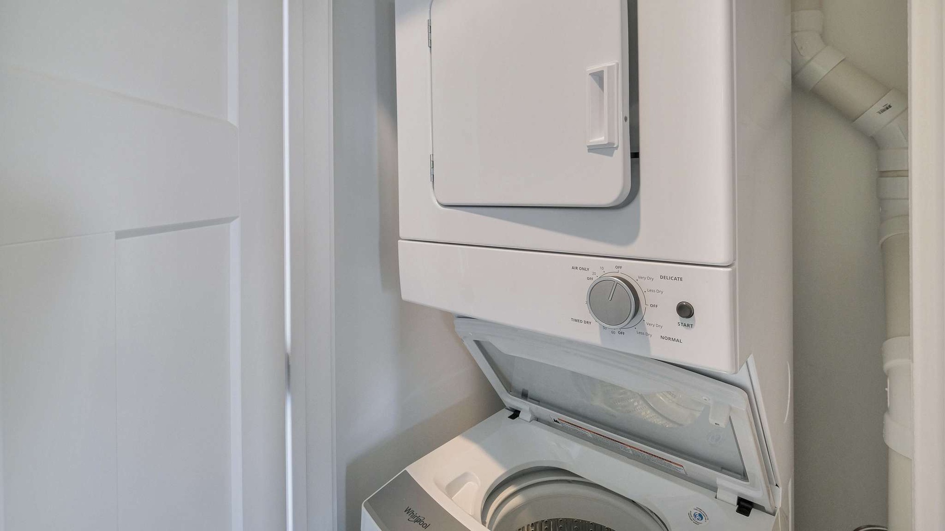 Also on this floor: Queen bedroom with plush bedding and restful décor full bathroom with tub/shower combo Smart TV in living room Kitchen with modern appliances, cookware, and coffee maker Dining table for 2 Pull-out sofa in living room Stackable washer and dryer