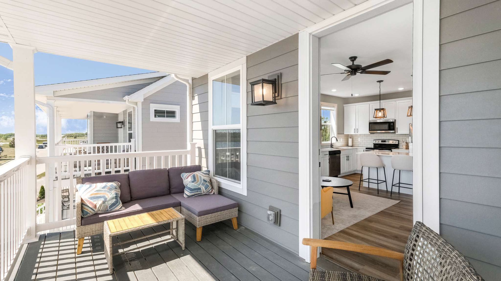 Navvy Town vacation rental offers multiple balconies and spacious accommodations in a peaceful setting with beautiful landscaping.