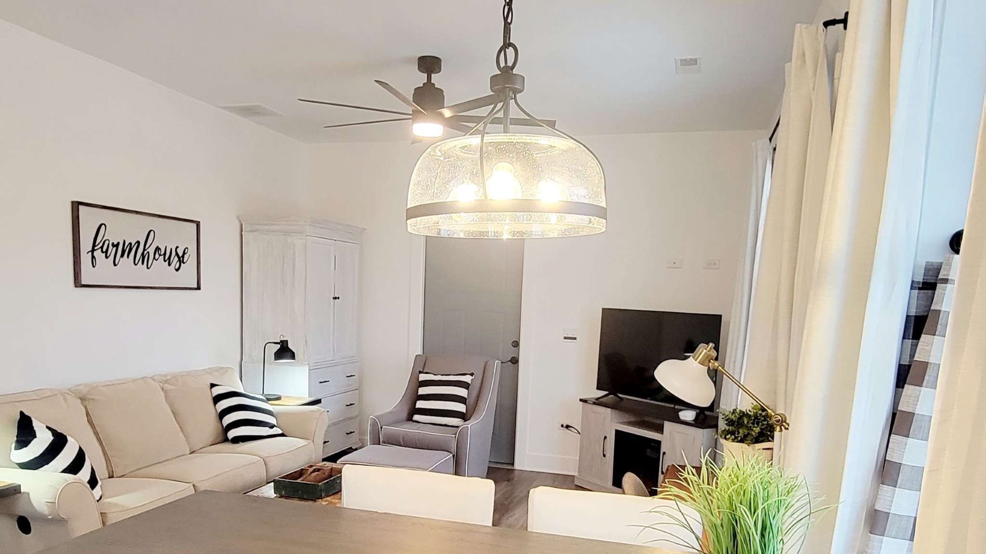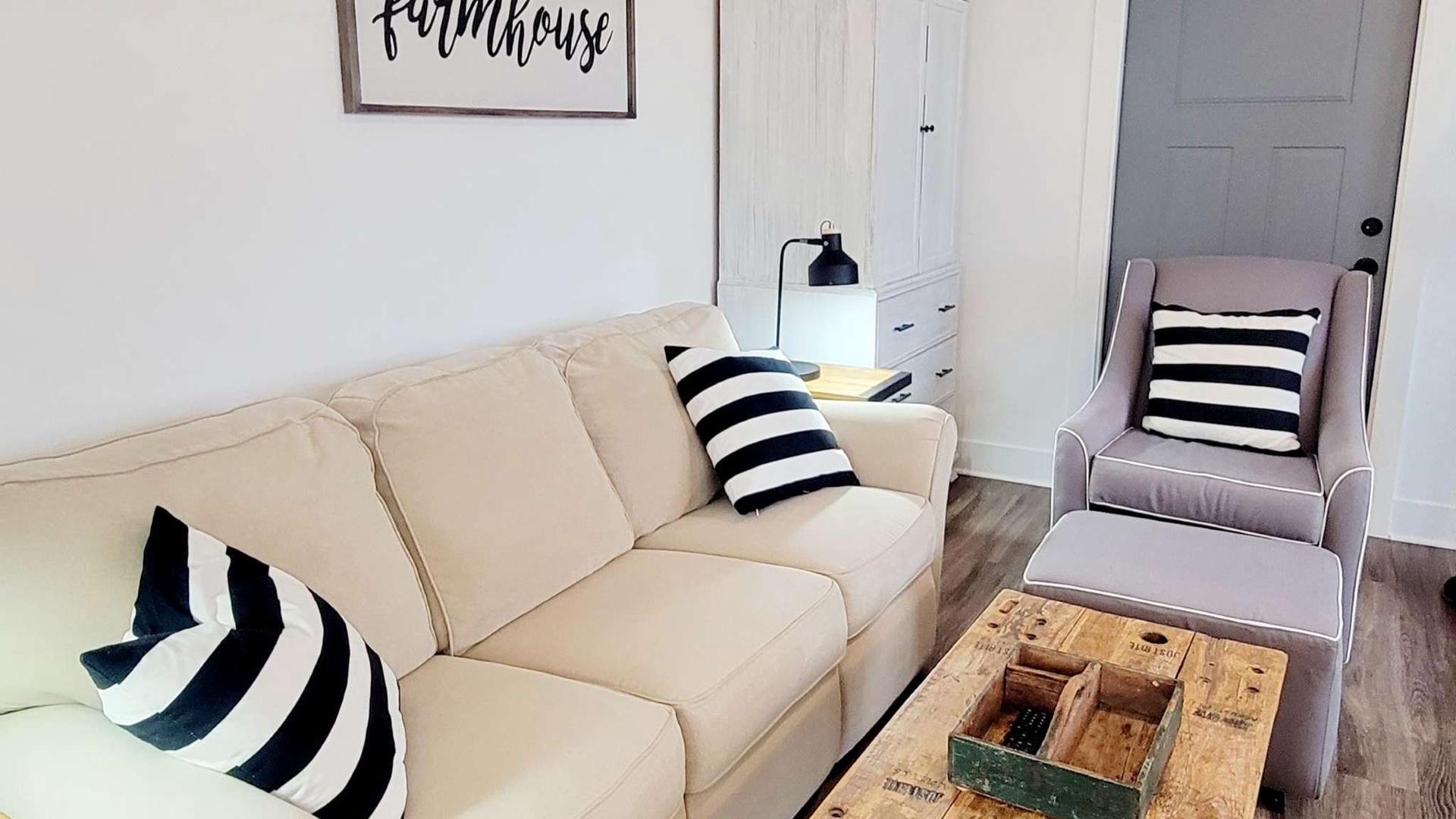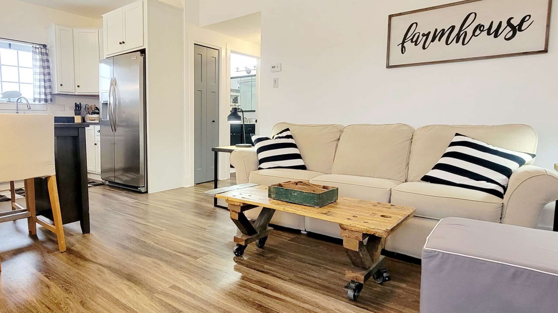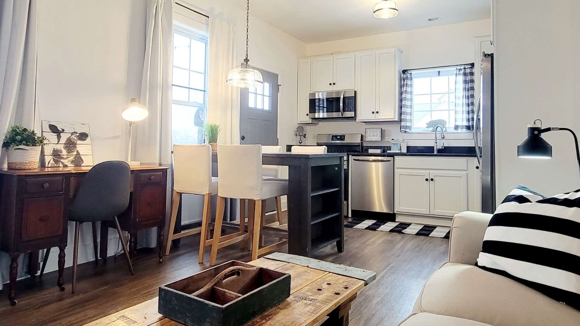 This 1-bedroom, 1-bathroom home features high ceilings, natural light, and 600 square feet of well-designed living space—complete with modern touches and a warm farmhouse feel.