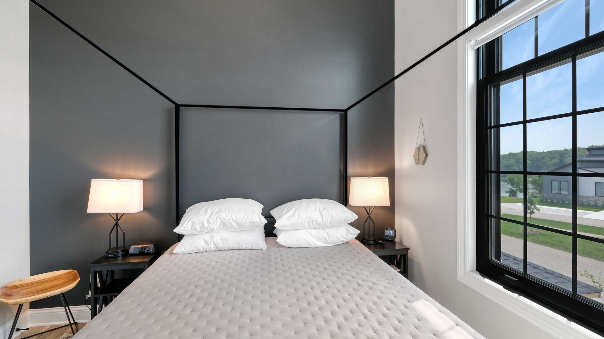 The bedroom is a sanctuary of tranquility, featuring tasteful decor and plush furnishings. The bathroom, adorned with high-end fixtures and sleek finishes, exudes a spa-like ambiance, providing a relaxing retreat after a long day.