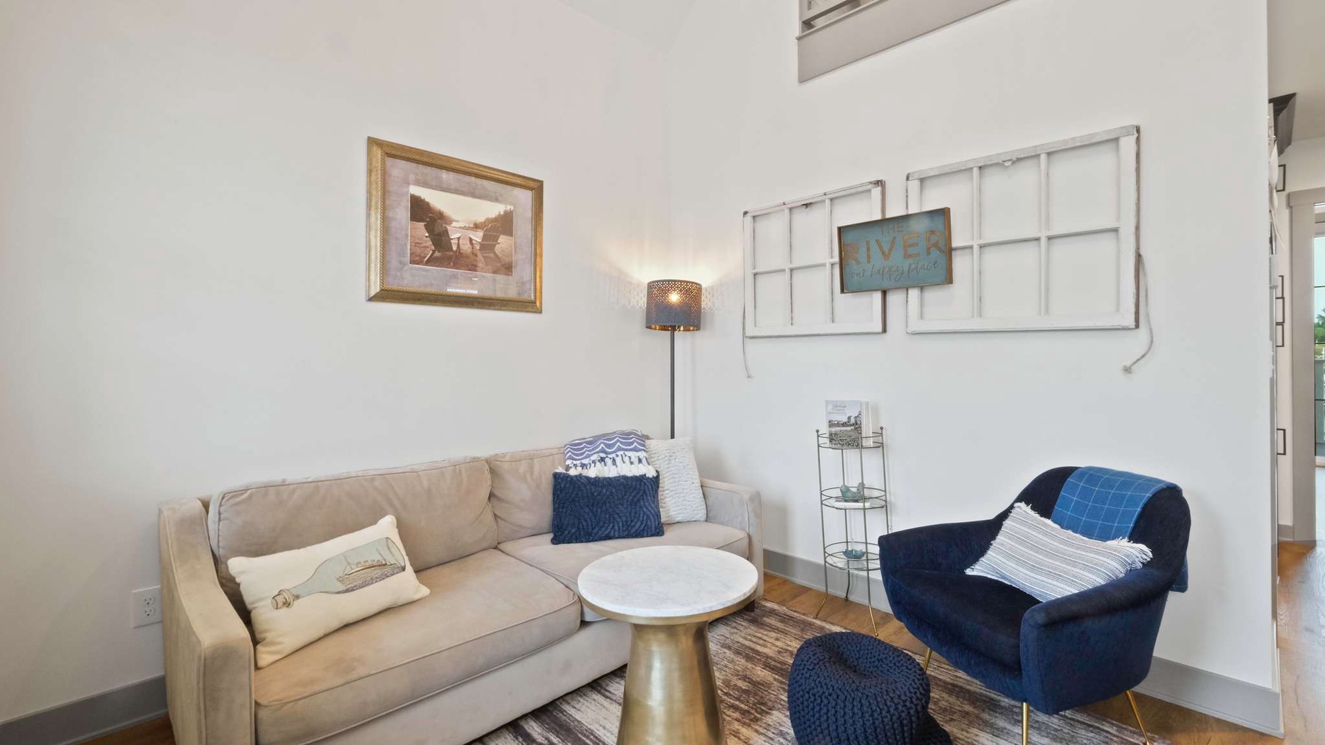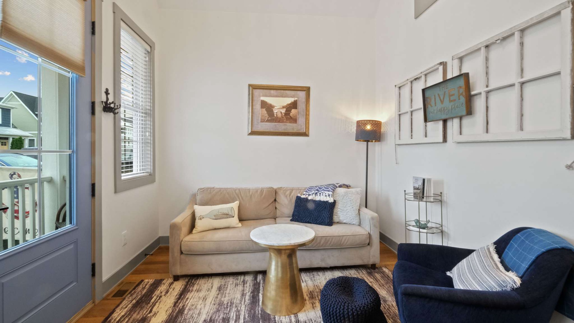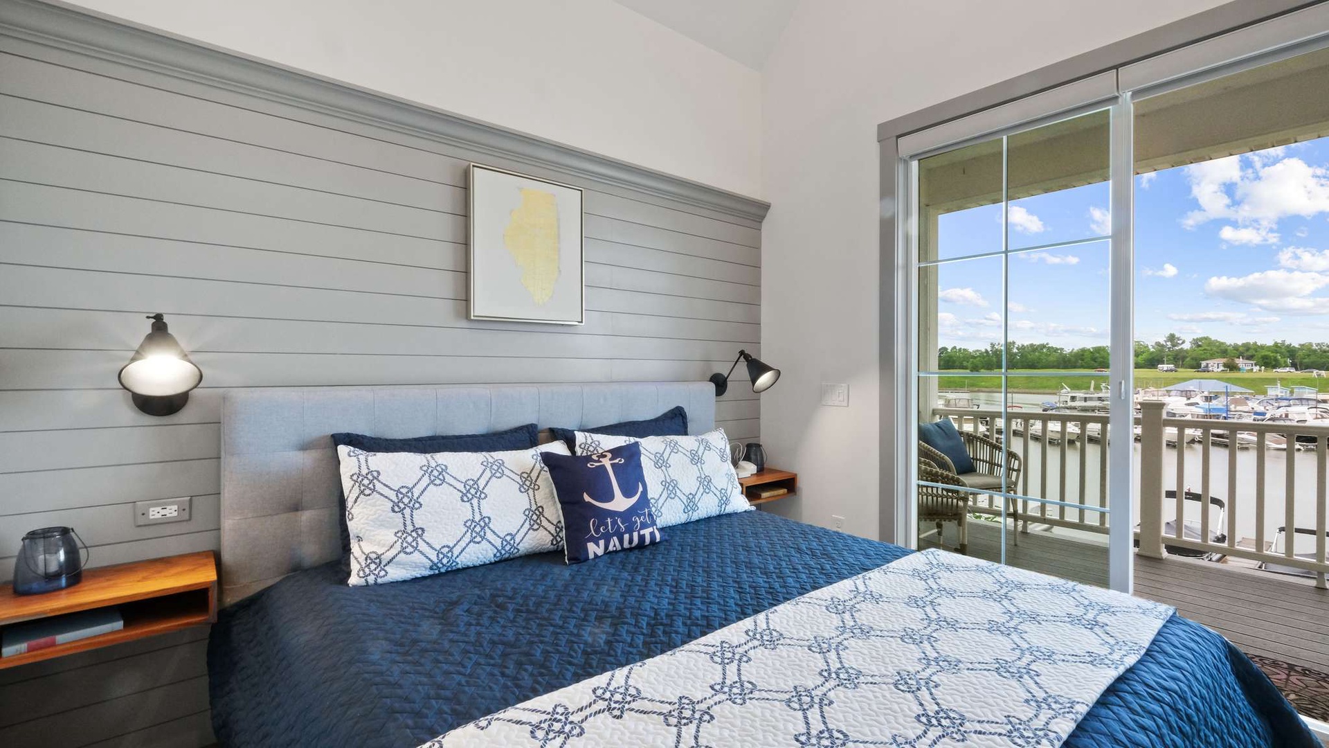 Ship, Captain, Crew is a charming waterfront cottage located in the Villas neighborhood of Heritage Harbor. Overlooking the harbor, this cozy retreat blends comfort and tranquility, making it the perfect escape for couples or small families. With one bedroom and a loft, the home comfortably sleeps up to four guests. Thoughtful design and coastal-inspired décor create a warm and inviting atmosphere, while the harbor views invite you to relax and unwind.