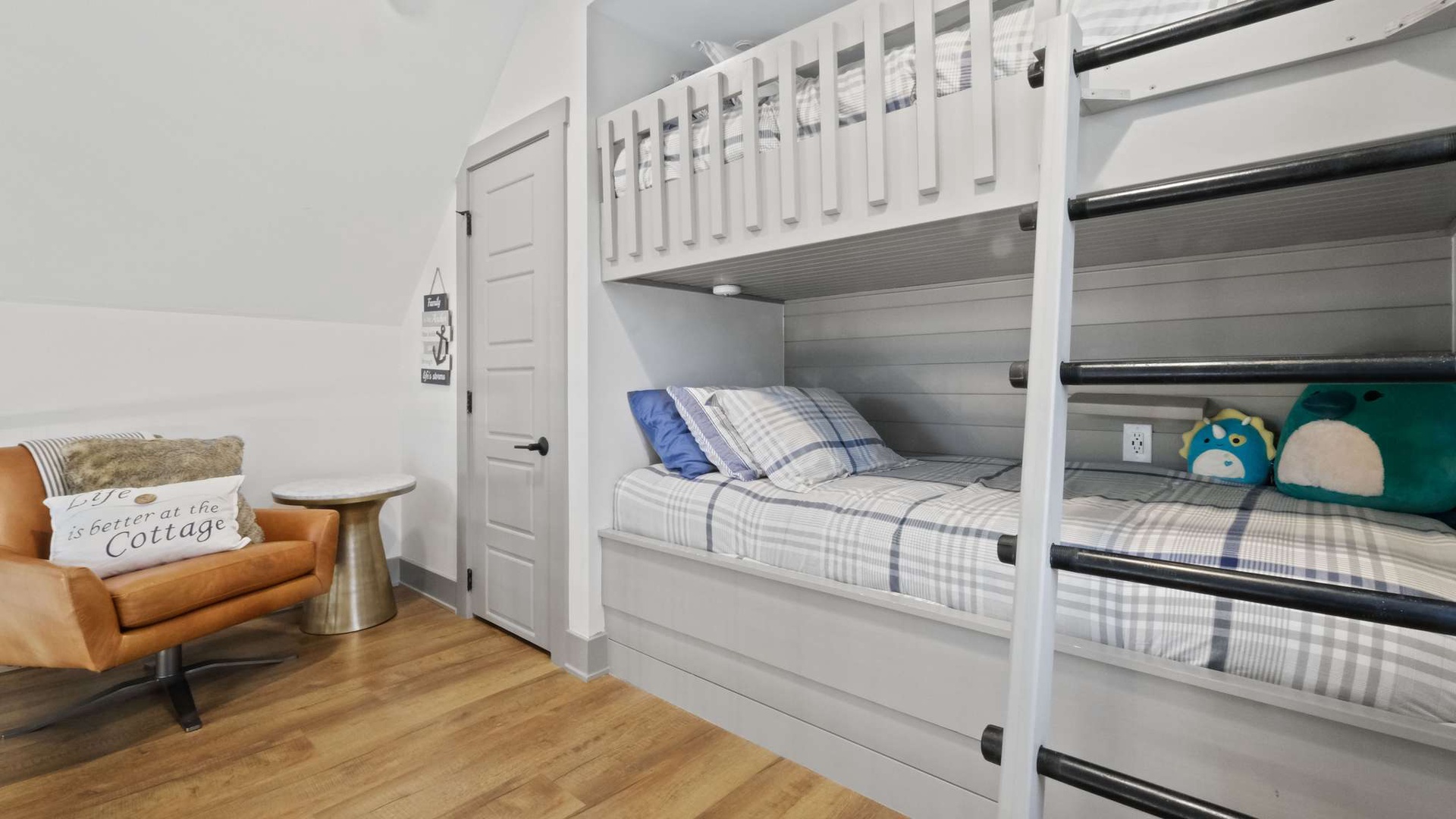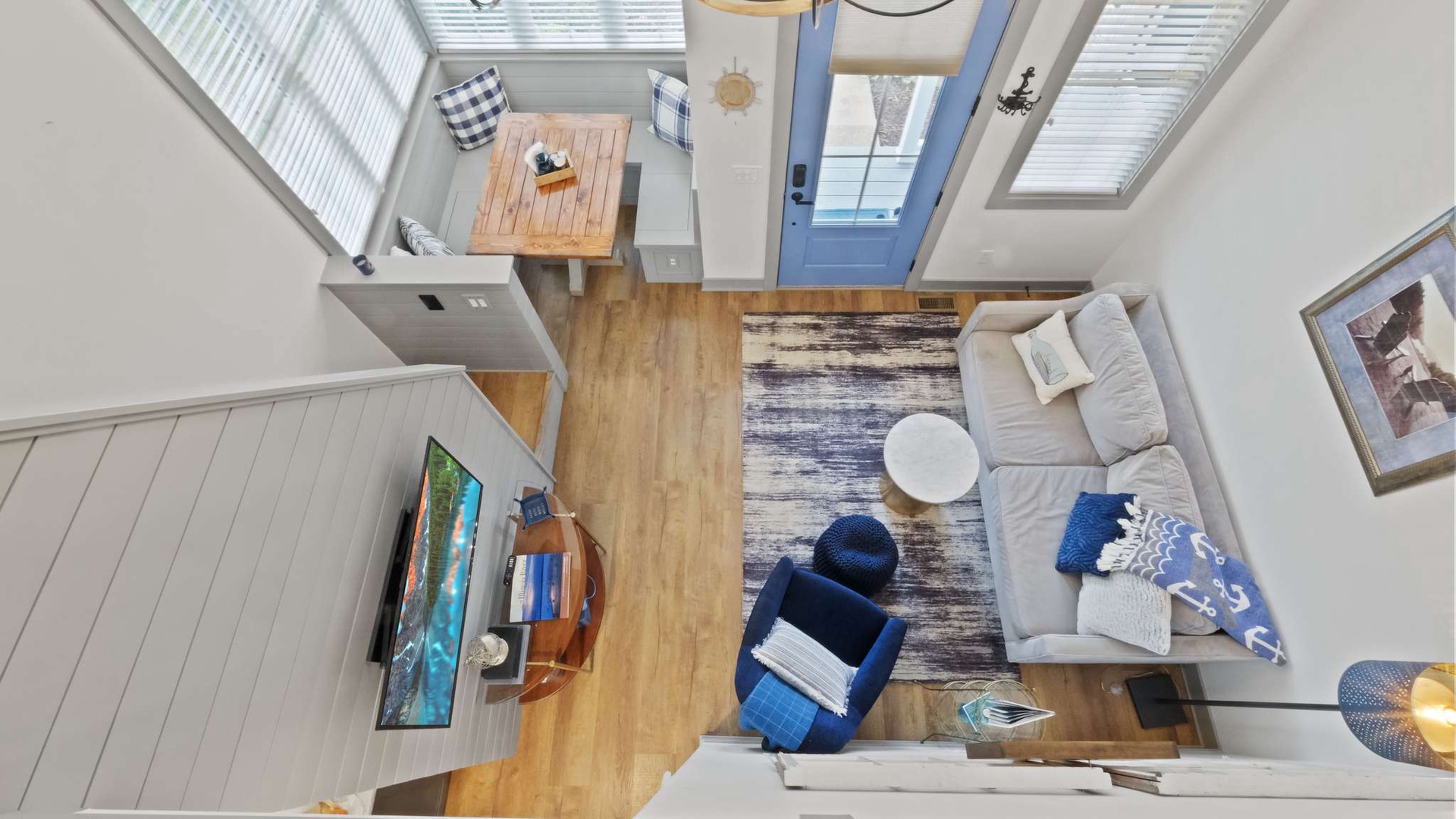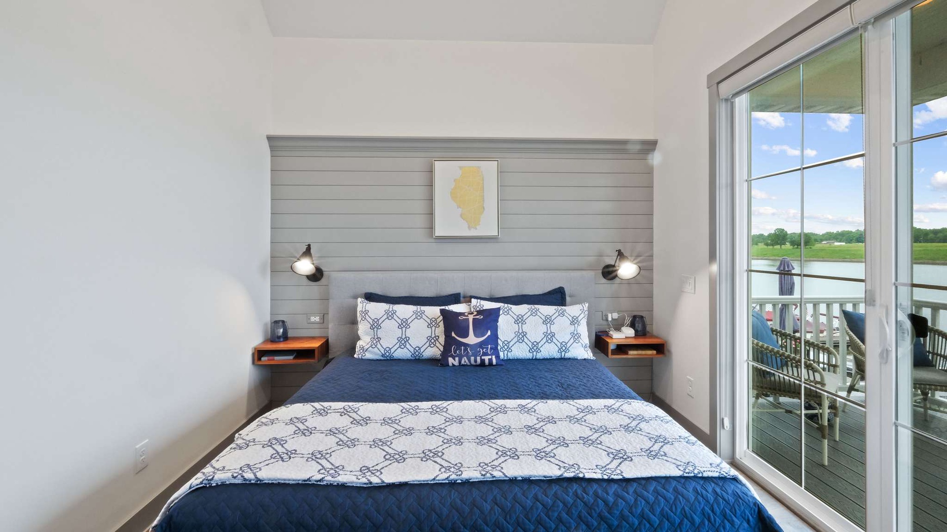Ship, Captain, Crew is a charming waterfront cottage located in the Villas neighborhood of Heritage Harbor. Overlooking the harbor, this cozy retreat blends comfort and tranquility, making it the perfect escape for couples or small families. With one bedroom and a loft, the home comfortably sleeps up to four guests. Thoughtful design and coastal-inspired décor create a warm and inviting atmosphere, while the harbor views invite you to relax and unwind.