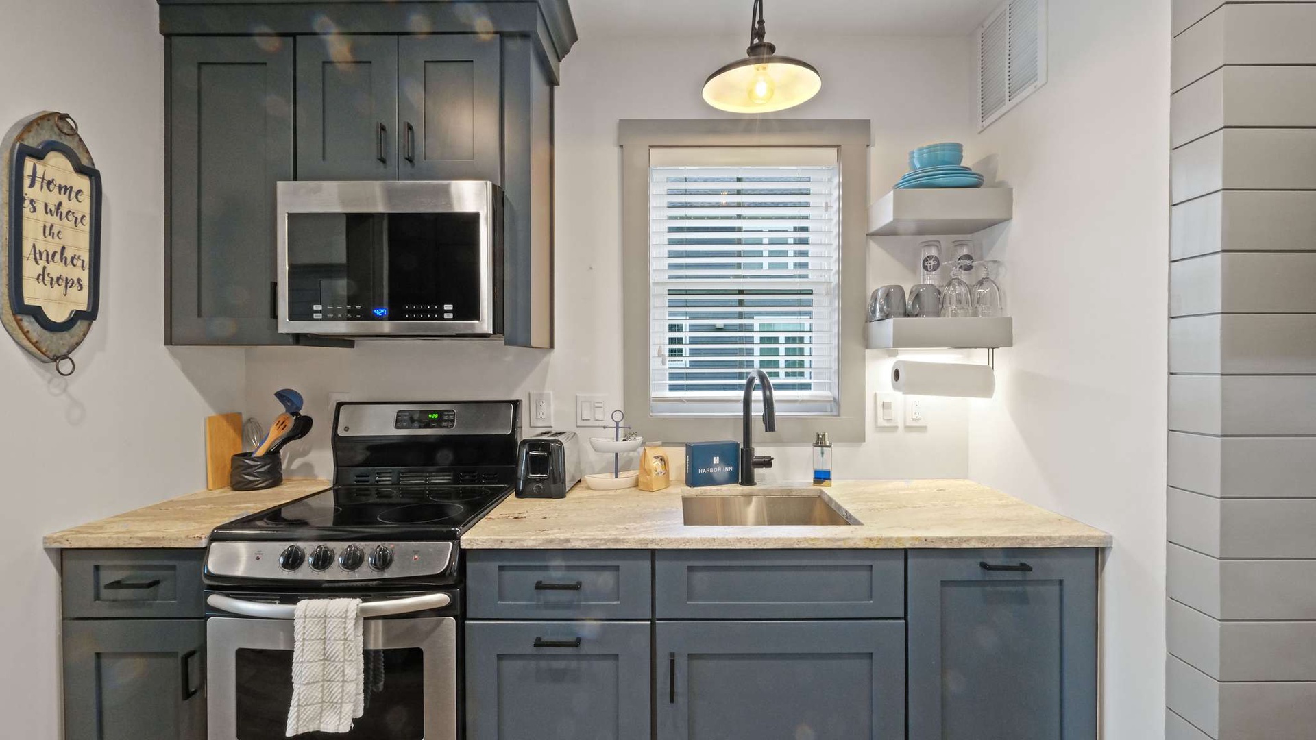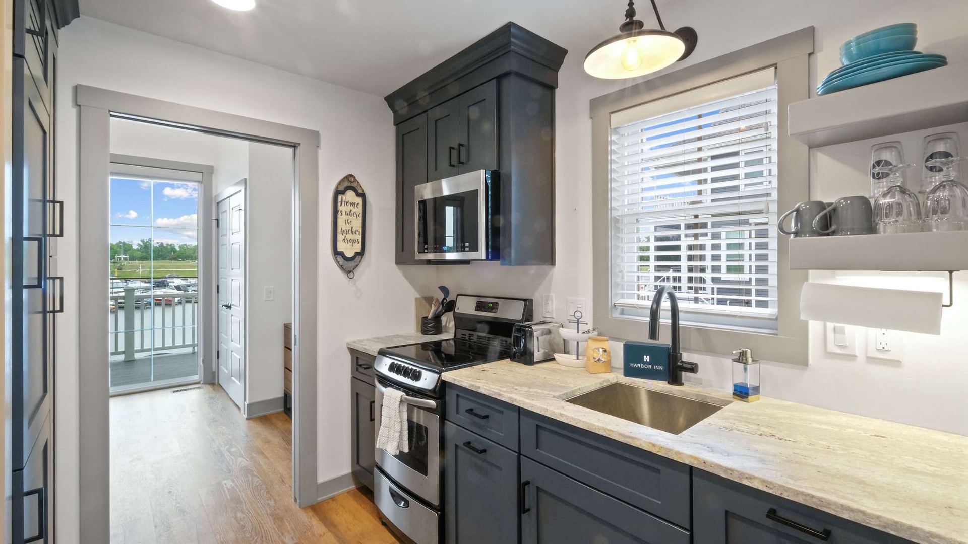 Step outside onto the porch and enjoy your morning coffee or evening glass of wine while watching boats drift by. The soothing sounds of the harbor create the perfect setting for relaxation or conversation with loved ones.