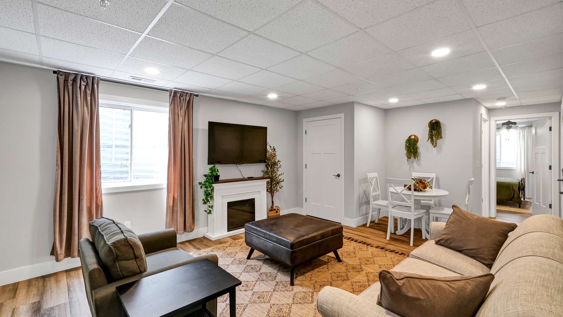 Welcome to The Oriole Suite, a stylish ground-floor condo with a finished basement, designed to provide a comfortable and inviting retreat for your getaway.