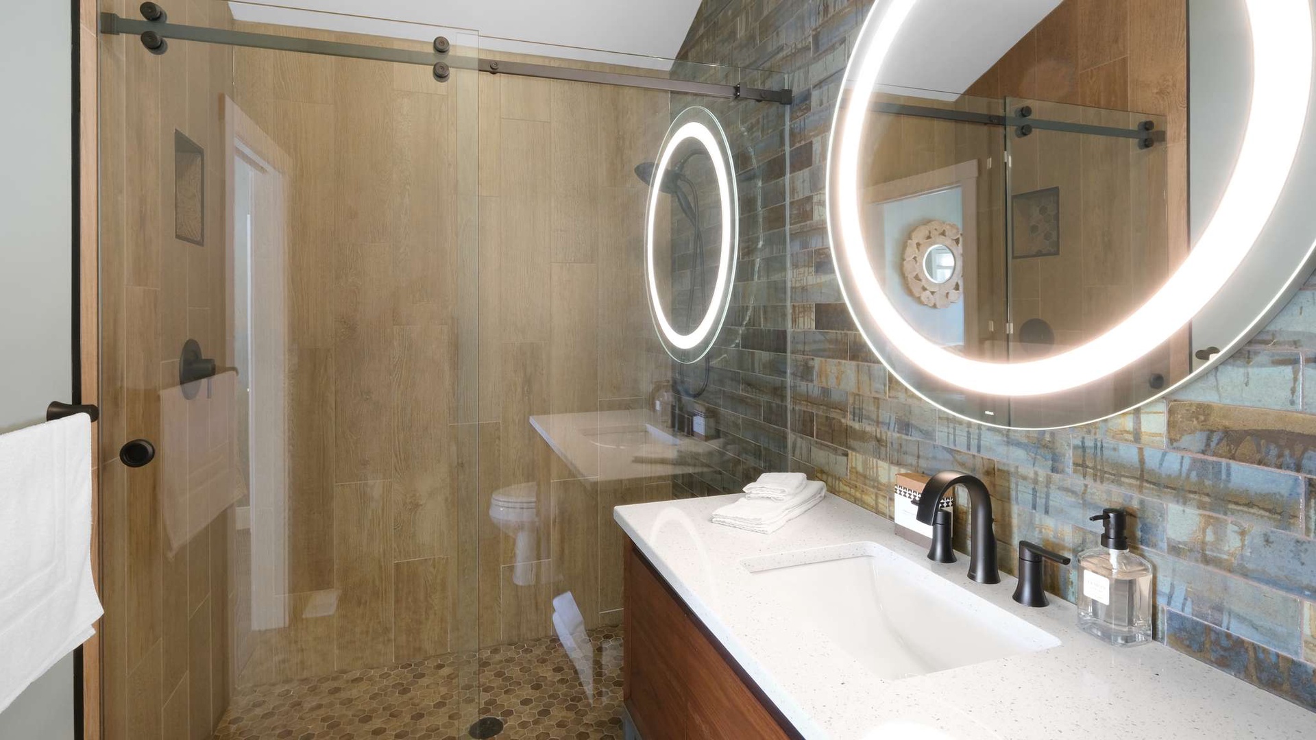 Upstairs, you’ll find two beautifully appointed bedrooms designed with relaxation in mind: