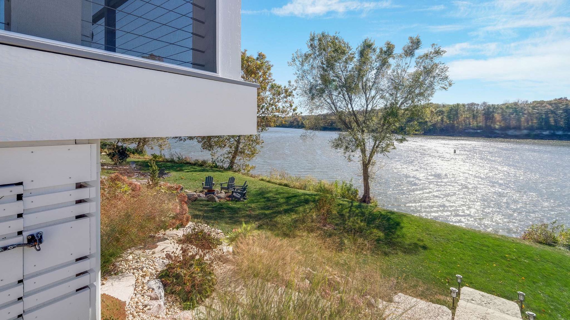 A hardscape patio along the river’s edge, ideal for gathering with friends and stargazing under the open sky.