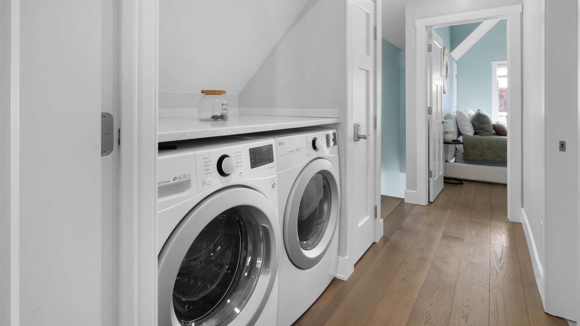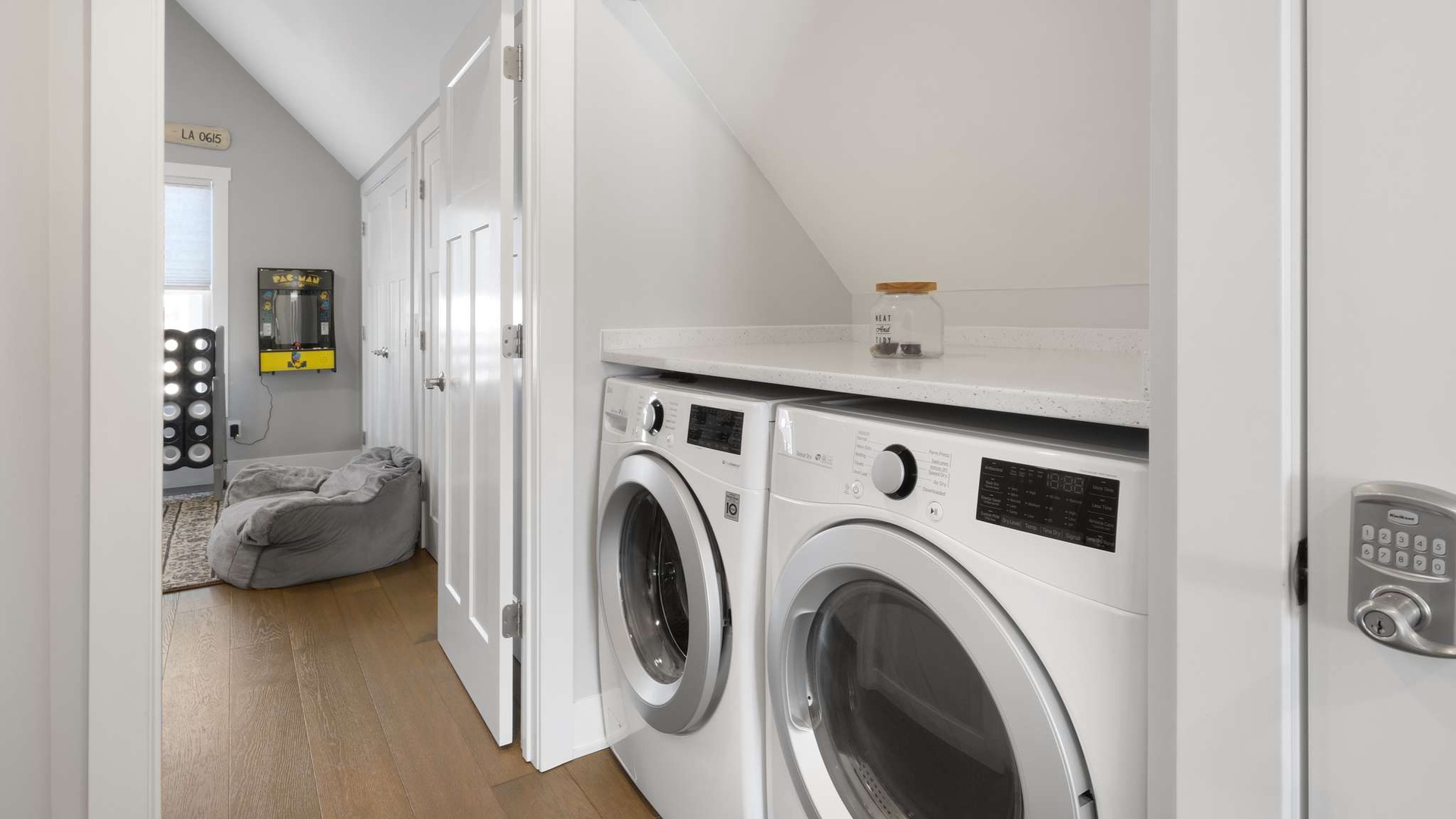 A dedicated laundry area is also located on this level, making extended stays easy and comfortable.