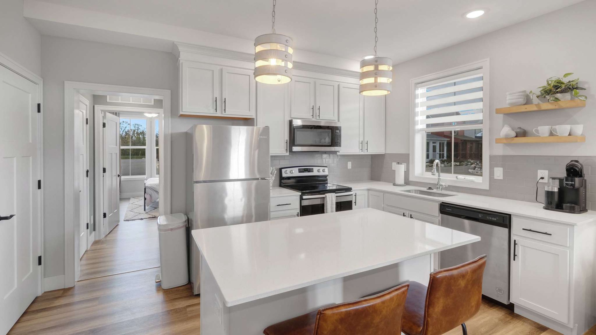 2 bedrooms | 2 bathrooms Sleeps up to 6 guests Full kitchen Smart TV Wi-Fi Private patio with marina views Finished basement Access to resort pool, walking paths, fire pits Steps from the river and marina